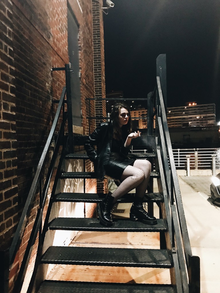 The ripped fishnets-leather skirt-Docs thing, while also generally encapsulating my personal style, has a lot to do with the curation of and creation of the self. Of course I don’t post selfies where I’m wearing something I didn’t put effort into. My curated self has a strict, vintage/goth inspired/grungy aesthetic, so I’m going to stick with it.