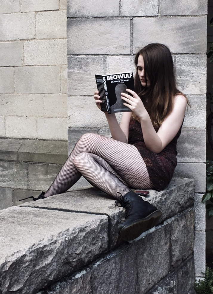 This was taken at the Cloisters. I actually was reading Beowulf at the time, and since I had it on me, I figured I’d use it as a prop for the photo. Which sounds kind of icky and pseudo intellectual when I say it that way, but at the time I thought it was a good idea. I do really love reading (hence the English major), so this photo definitely encapsulates that particular trait. I even started a bookstagram to take pretty photos of the books I’m reading, though I’m admittedly super bad at keeping up with it. But that one particular facet of my identity is definitely on display in this picture and a lot of my other instagram posts. Also, as stupid as this may sound, I thought the book complimented my outfit to a degree—the fishnet tights kind of look like the chainmail on the cover, and my dress reminds me of a tapestry (which is kind of the entire reason I bought it). Actually, I think the reason I tend to prefer selfies taken with self timer or by another person rather than forward facing is because it gives me the chance to show off what I’m wearing. I like to think I have good taste in clothes, and I really like this particular outfit.